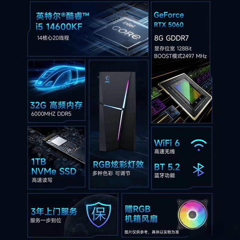微星提供丰富的产品系列,覆盖了从入门到高端的多种型号选择。例如,微星的海皇戟和宙斯盾系列主机,分别针对游戏和专业设计需求进行了优化。产品搭载了14代Intel i5处理器、RTX 5060显卡等顶尖硬件,确保无论是在游戏、3D设计,还是多任务处理上均能胜任。其大容量存储(1TB SSD)和内存(16GB或32GB)配置,满足不同用户的实际需求,让用户在选择时可根据自身情况灵活调整。