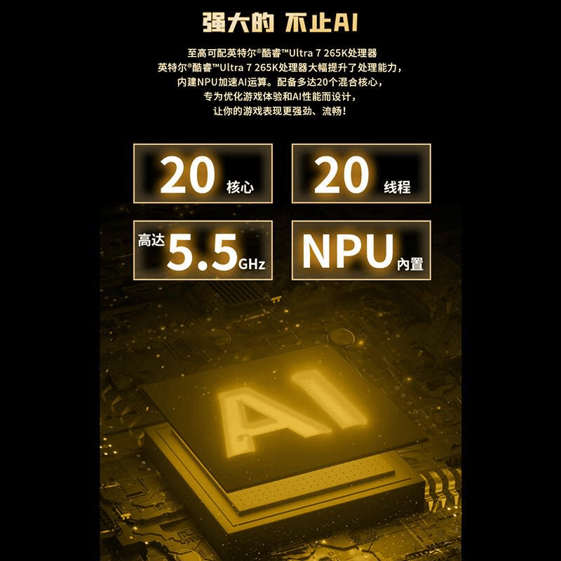 在高负载游戏和设计工作的需求下,强大的Ultra 7 265KF处理器提供了不可思议的性能。让用户在享受合作与竞争的同时,不再受制于计算能力,轻松应对各种复杂任务。这种核心配置保障了流畅的游戏体验,实现高效的创意制作,无论是对战竞技还是内容创作,都能游刃有余。